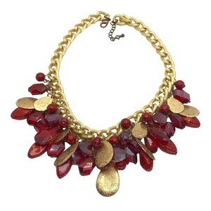 Statement Necklace Gold Tone Red Tear Drop Beads Simulated Stone Adjustable Leng