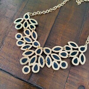 Statement Necklace Goldtone Black Marquise and Round Crystals