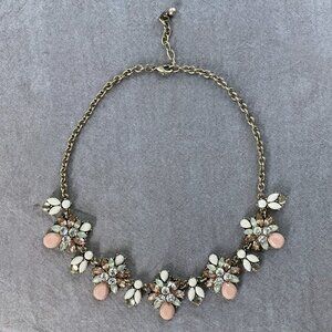 Statement Necklace, Peach Pink Pastel & Rhinestones, Gold Tone, Retro Vibes!