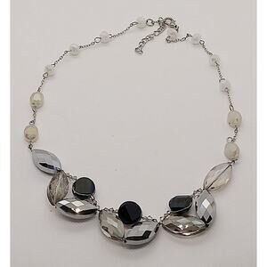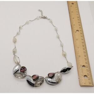 Statement Necklace Purple\Clear\White Crystals/Rhinestones Silver Tone