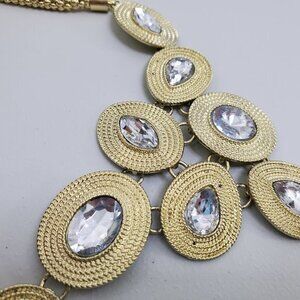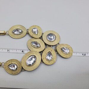 Statement Necklace Rhinestone Tear Drop Gold Tone