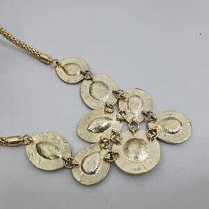 Statement Necklace Rhinestone Tear Drop Gold Tone Textured Boho Tribal