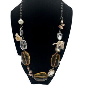 Statement Necklace With Amber & Clear Beads Rhinestone & Pearl Accent