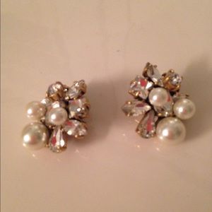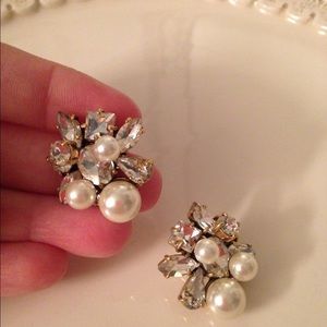 Beautiful Pearl & Crystal Cluster Earrings. Great for Dressy Occasion or Fancy Date Night.