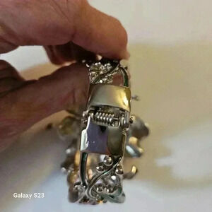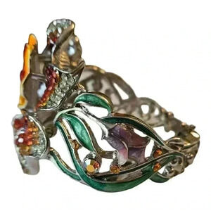 Statement Piece Bold Hinged Bracelet Orchid Flower Orange Red Pave' Crystals....
