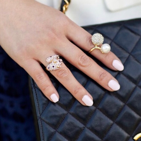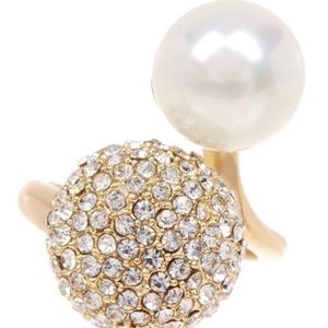 18k gold plated crystal pavé & pearl ring. This is a beautiful, sparkly statement piece for a night out! It is sure to catch everyone’s eye 💞