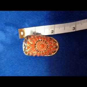 Beautiful, orange stones set in gold. Approx fit size is 7. It's an 8 size, but the band is thick making it smaller.