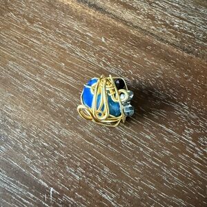This stunning women's ring features a captivating blue stone set in a luxurious gold band. Perfect for adding a touch of elegance to any outfit.