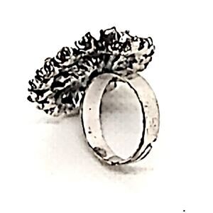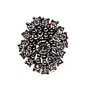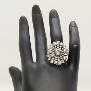 Statement Ring Clear Rhinestone Starburst Shape Adjustable Silver Tone