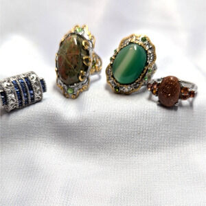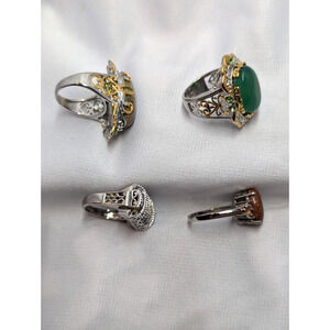 Statement Rings Size 8 Lot of 4 Stone Crystal Stainless Steel Platinum Brass