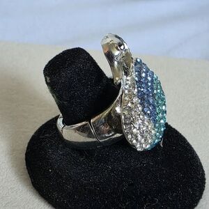 Statement Silver Ring Swan with Blue Green Rhinestones