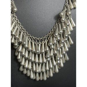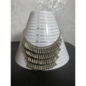 Statement Silver Tone Tiered Bib Necklace With Adjustable Chain