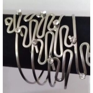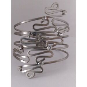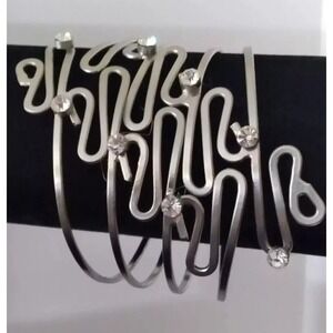 Statement Snake Like Pattern Bracelet Rhinestone Four Stands Silvertone Unique