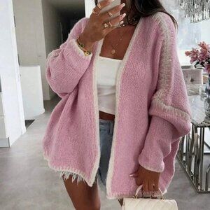 Statement Stylish oversized Knit Sweater Cardigan Pink