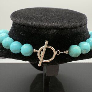 Statement Turquoise & Red Coral Beaded Necklace Sterling Silver Toggle Clasp