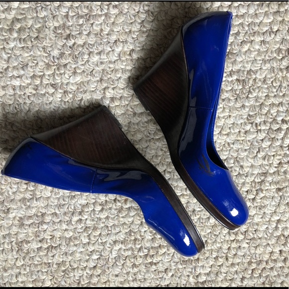 Great condition, hardly worn statement patent wedge. Bright and fun to wear with darker colors.