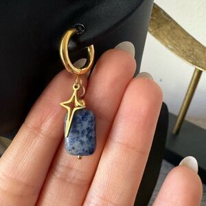 Statement star blue natural stone hoop earrings in stainless steel 18k gold plated hardware