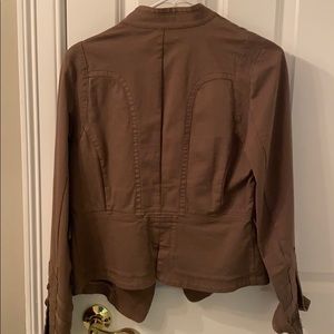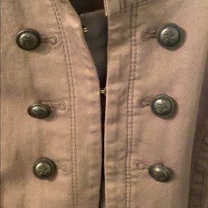 Adorable lightweight jacket that can be worn anytime of the year. Cool buttons going up on both sides and there are working clasps all the way up to close the jacket if that style is preferred. Some of the buttons on either cuff are missing so selling at a very low price point due to that.