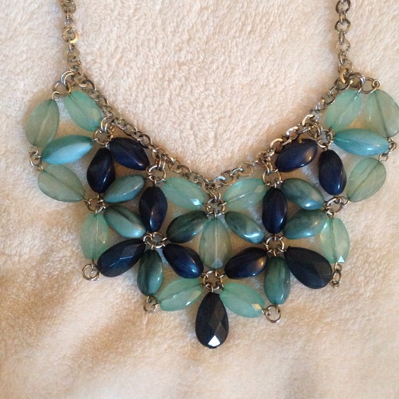 Blue, Aqua, green flower statement necklace, so gorgeous with a solid color top or dress!