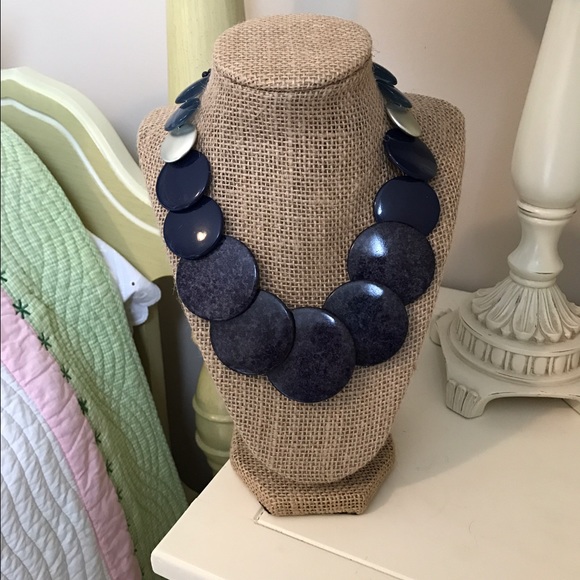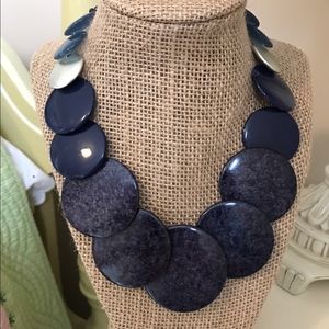Statement necklace with bold navy acrylic beads. 21" long.