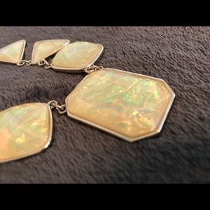 White shinny statement necklace with triangular and rectangular shapes. The pieces have light reflecting elements that make many compliments! (Second pic with flash)