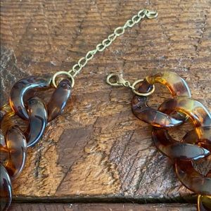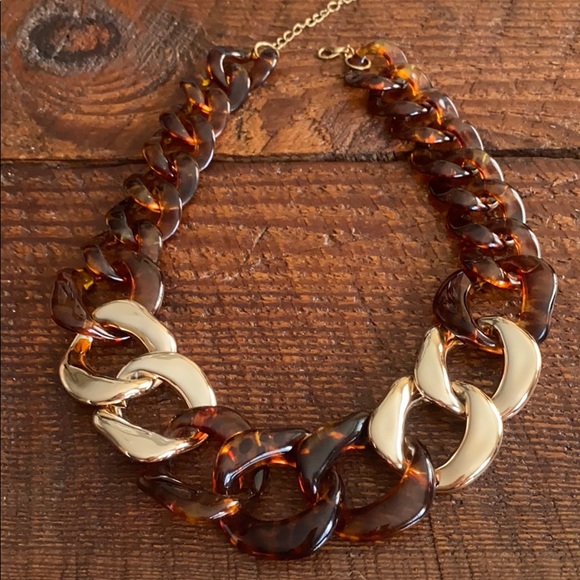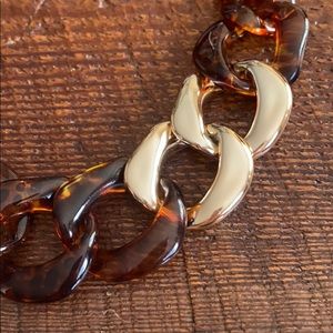 Plastic so very light to wear Graduated links Tortoise and gold links Adjustable