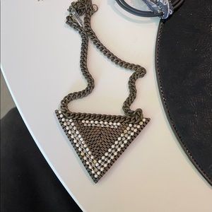 Brown/ brass, diamond, and white beaded statement triangle necklace.