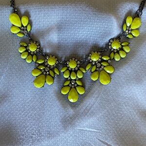 Such beautiful bright yellow necklace with crystals . Style with your basic outfit add a popup color to stand out.