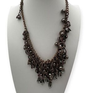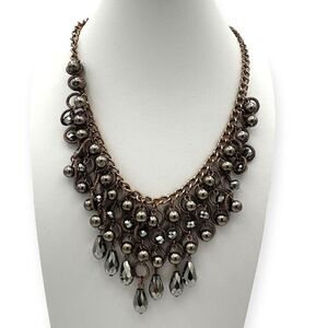 Statement necklace silver toned with balls and circles heavy 20 inches matinee
