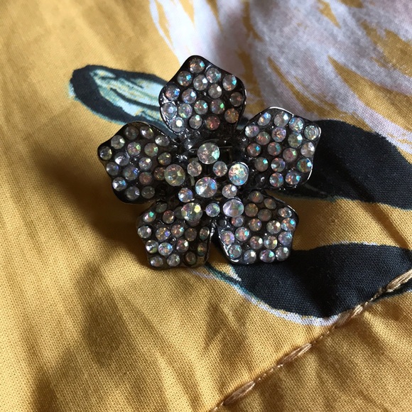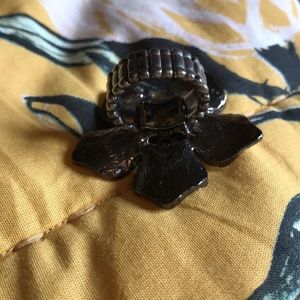 Large statement ring Pewter colored metal Opalescent stones Stretch band Maurice’s brand