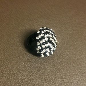 Plastic ring with stretchy black band and black and white stones. Fun statement ring. Never worn