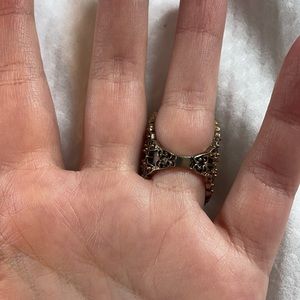 Statement ring. Gemstone in middle. Faux diamonds detail. Brass/gold setting. Fits size 6 finger best.