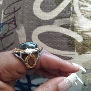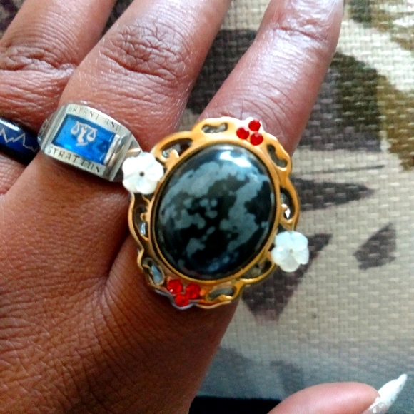 Beautiful red rhinestones flower accents caved from shell gold and silver plated