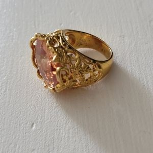 Beautiful size 5 gold tone (stamped 925) ring. Gemstone is a gorgeous amber color.