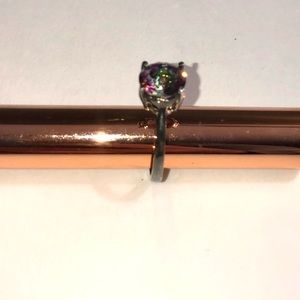 3) A sterling silver ring with a purple/green simulated stone. Measurement: