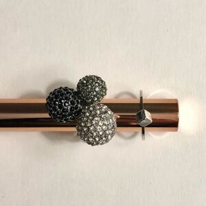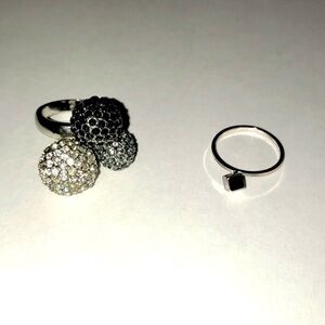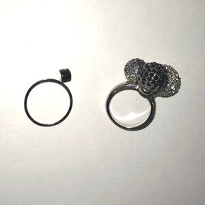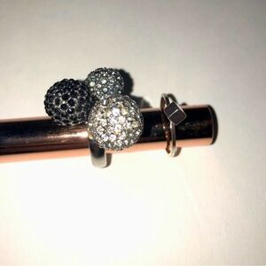 5) Large statement ring holding three rhinestone encrusted spheres of, black, silver and grey. Measurements: