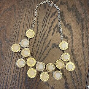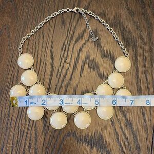 Statement Necklace Cream Dot Enamel and Gold Tone Metal Choker Neutral Vintage