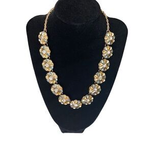 Statement Necklace Gold Tone Multicolor Rhinestone Flower Daisy Adj Length