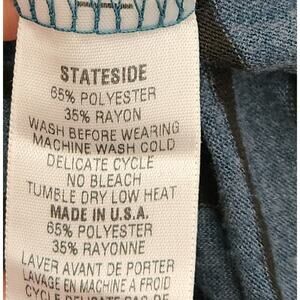 Stateside Blue Black Striped Twisted Hem Round Neck Top Medium Lightweight