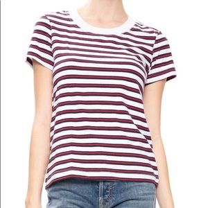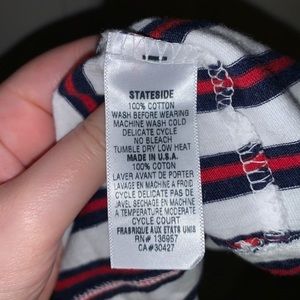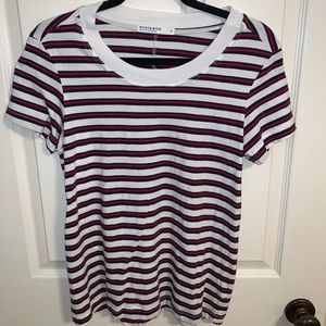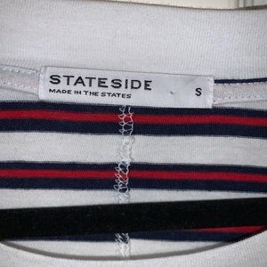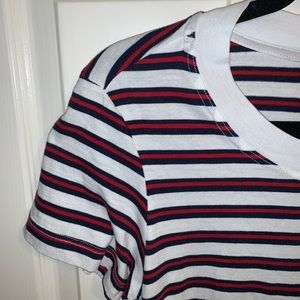 Stateside striped Crewneck tee. White tee with red and navy blue stripes. Size small. 100% cotton