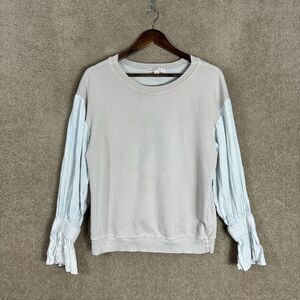 Stateside Sweatshirt Womens Small S Gray Crew Contrast Linen Sleeve French Terry