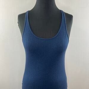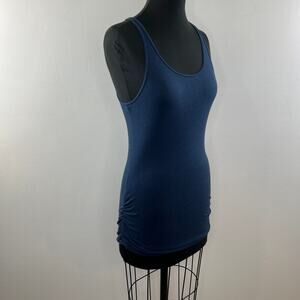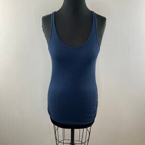 Stateside Tank Top Blue Cotton Scoop Neck Yoga Side Smocked Knit Size Medium