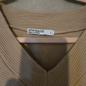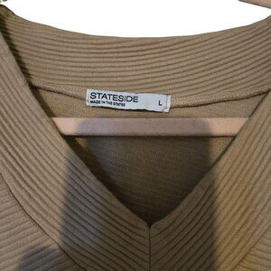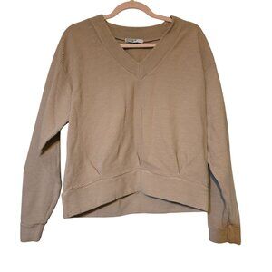 Stateside Women's Brown Rachel Chunky Ribbed V-Neck Raglan Long Sleeve Sweater L