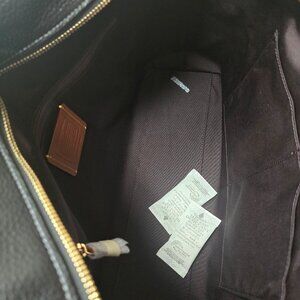 Refined pebble leather Inside zip cell phone and multifunction pockets Zip-top closure fabric lining Handles with 10 1/2 drop Outside zip pocket 13 3/4 (L) x 10 1/4 (H) x 5 (W) Style No. CCE23