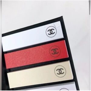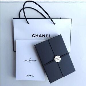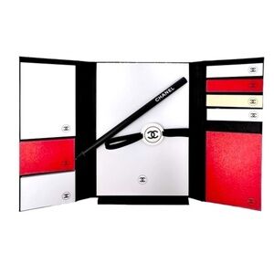 Authentic limited edition stationery set includes CHANEL note pad, multiple sized sticky notes and pencil. All items beautifully set in a black tri-fold book with a CC band closure. A must have item for any CHANEL enthusiast.
