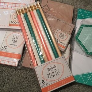 Brand new stationery set. Includes 3 magnetic list pads, 3 sticky notes, and wooden pencil set