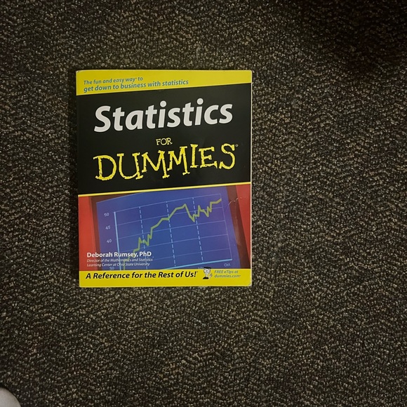 Explore the world of statistics with the 'Statistics For Dummies' book. Featuring a vibrant yellow cover, this guide is perfect for beginners and enthusiasts alike.