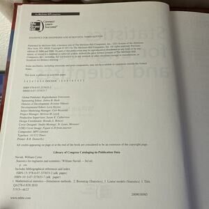 The product is a textbook titled "Statistics for Engineers and Scientists" by author William Navidi, published by McGraw-Hill Higher Education in 2010. This edition is the third, containing 908 pages of content focusing on Industrial Engineering and Probability & Statistics. The book is a comprehensive resource for students and professionals in the field, with a hardcover format and written in English. It measures 9.4 inches in length, 7.6 inches in width, and 1.6 inches in height, weighing 52.7 ounces.