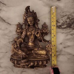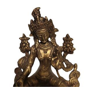 Statue Tibetan Of Green Tara Green Deity Buddhist Brass 7385