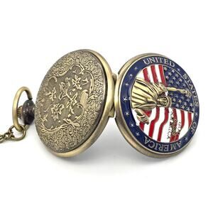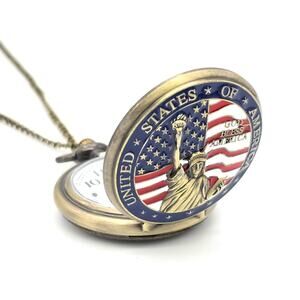 Statue of Liberty Pocket Watch - Patriotic USA Gift, Vintage American Keepsake